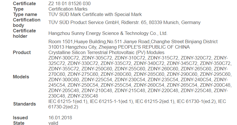 Nominal Operating Cell Temperature (NOCT): 800W/m2, AM 1.5, windspeed 1m/s,ambient temperature 20°C |